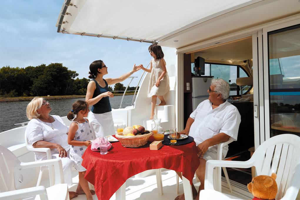 Nasze łodzie zostały zaprojektowane tak, aby zagwarantować bezpieczeństwo wszystkim, w tym dzieciom i wnukom. Znane ze swojej zwrotności i łatwego dostępu modele, takie jak Fly, Sedan i Estivale, mają jednopoziomowy pokład, idealny dla młodszych dzieci, bez schodów. Co więcej, wszystkie nasze łodzie są wyposażone w balkony z podwójnymi poręczami i poręczami, gwarantując maksymalne bezpieczeństwo wokół łodzi. Taras rufowy jest chroniony przez 1-metrowy balkon, a z salonu lub stanowiska sternika można łatwo mieć oko na dzieci. Jednak biorąc pod uwagę ryzyko związane z wodą, zaleca się, aby dzieci nosiły kamizelkę ratunkową lub opaski dla małych dzieci, które są wygodniejsze w ciepłe dni. Jest to szczególnie ważne podczas cumowania lub przechodzenia przez śluzę. W naszych bazach oferujemy kamizelki ratunkowe dla dzieci w standardowym rozmiarze.